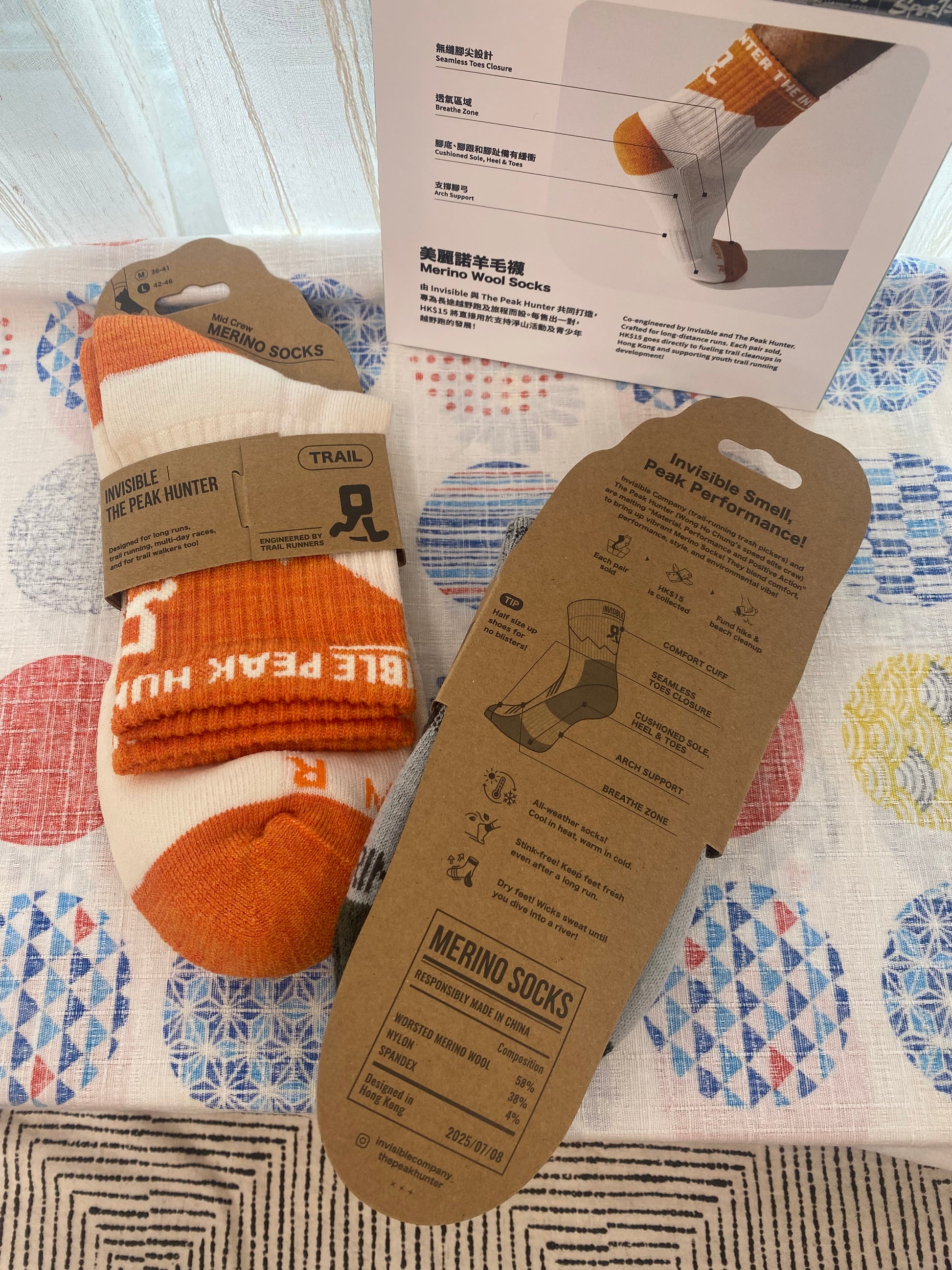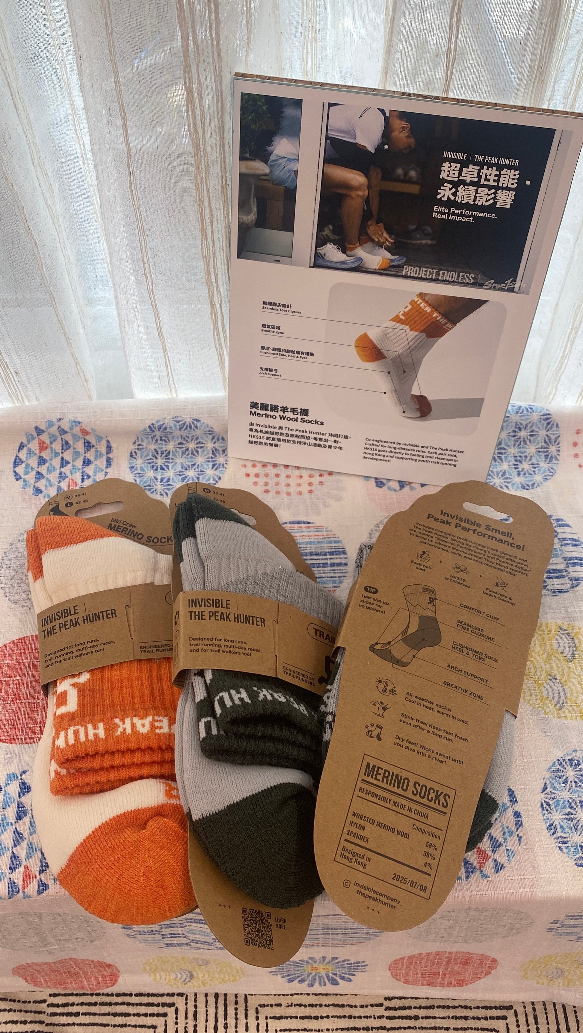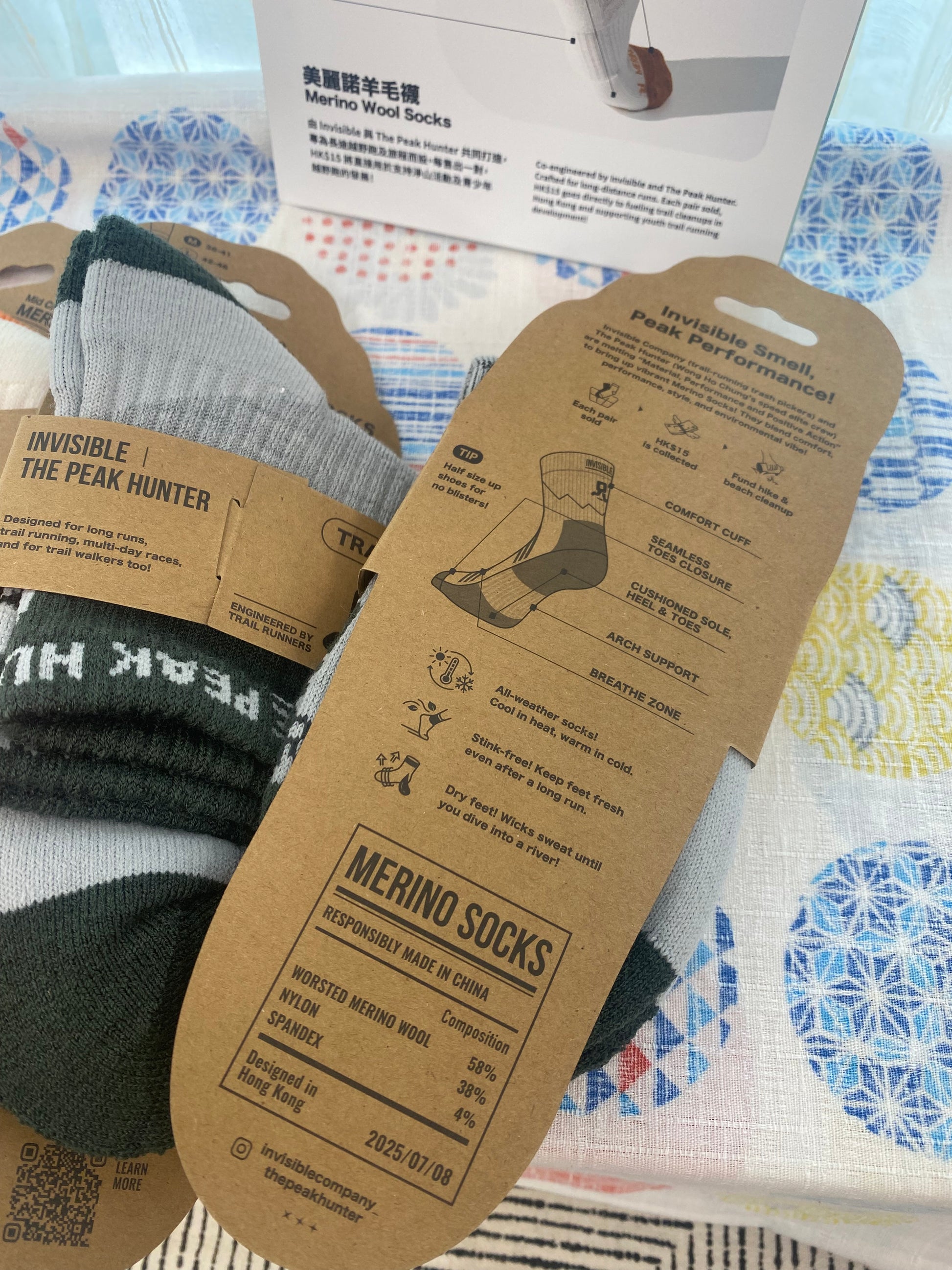 為您隆重介紹這款 美麗諾羊毛越野跑襪,由 Invisible 與 The Peak Hunter 共同打造,由香港頂尖越野跑手黃浩聰創立。經過幾百公里、比賽多日實測,穿著不清洗,真正做到零異味,並獲得跑手一致認可。